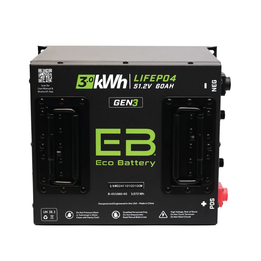 The 51V 60Ah from Eco Battery is our most competitively priced powerhouse—an amazing option to ditch those inferior lead-acids and upgrade to the benefits of lithium. Your 48V golf cart will love the extra push from the Grade A LiFePO4 cells, and your lifestyle will appreciate the hassle-free maintenance! This 60Ah battery is the perfect size for those who use their cart for short trips and have easy access to daily charging.