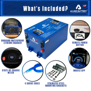 • Innovative sleep mode: Eliminates risk of over discharge if customer leaves headlight or other accessories on. When paired with an Allied Solenoid the system will disconnect ALL draw from motor, controller and accessories, eliminating the risk for over discharge and protecting the customers investment.