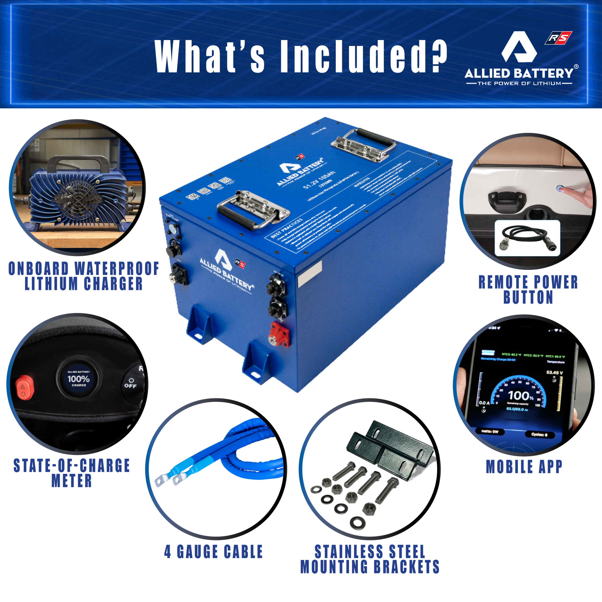 • Integrated Active Balancer: Balances cells 80X faster than batteries depending on just the BMS. The Allied active balancer ensures cells are fully balanced when charging and discharging. This will extend the life of the battery and ensure a consistent state of charge due to every cell being at the same voltage.